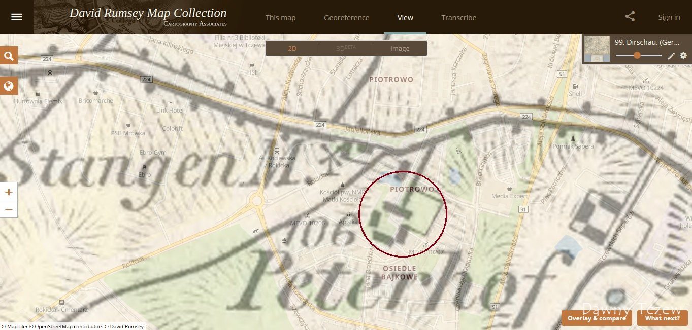 Przechodząc do spraw historycznych - na Forum jakiś czas temu pojawił się wątek mapy z 1893 r.: viewtopic.php?f=33&t=1611#p35566 Pod podanym linkiem jest użyteczne narzędzie pozwalające nałożyć mapę archiwalną na aktualna (opcja: "View in Georeferencer") i regulować stopień przezroczystości.