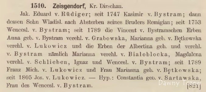 W gronie następców Bystrama znaleźli się współwłaściciele z rodu von Łukowicz - przedstawiciele polskiej szlachty, wiernej królowi pruskiemu (tzw. Polskich Prusów). Warto przyjrzeć się bliżej rodzinie von Łukowicz, która doczekała się nawet dedykowanej podstrony internetowej na Pavitro.net, aczkolwiek po niemiecku. Można się z niej dowiedzieć m.in. że Franciszek Michał von Łukowicz (31.3.1759-11.1.1799) był polskim pułkownikiem tytularnym i otrzymał od ówczesnego polskiego uniwersytetu honorowy dyplom z obrazem heraldycznym, która nadal służy jako wzór dla rysunków heraldycznych jego potomków. Starszy brat Franciszka Michała, Józef, złożył w swoim i jego imieniu hołd królowi pruskiemu po I rozbiorze Polski. Franz Michael był zamożny, miał dwór na Czyżykowie od 1789 r.
