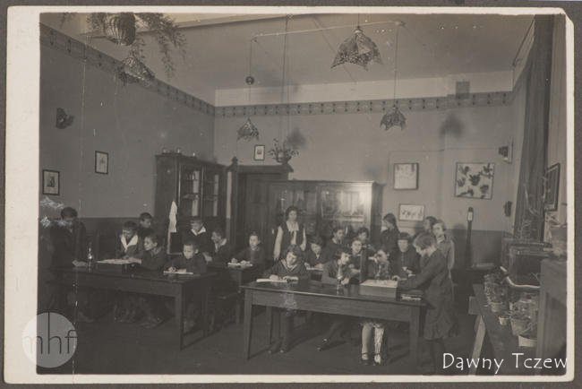 Na fotkę natknęłam się w jednym ze starszych albumów pana Golickiego. Podpisano, że została wykonana w pracowni przyrodniczej w Szkole Handlowej (początek lat trzydziestych). Z informacji zamieszczonych w albumie wynika, że szkoła ta istniała w budynku przy ul. Wodnej (dawny szpital św. Jerzego). Placówka działała od 1923 roku. Pod koniec lat 30. została przemianowana na Gimnazjum Kupieckie.