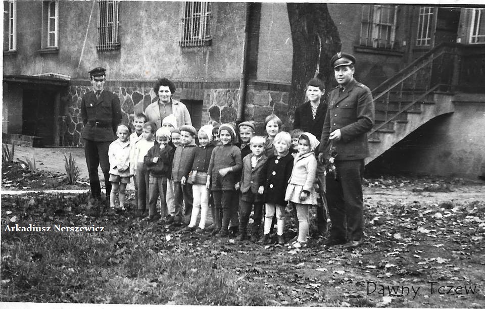 Tczew jednostka saperów przy ul.Wojska Polskiego Z wizytą w dniu Wojska Polskiego .Październik ok.1964-5 .Dzieci z przedszkola na Czyżykowie (ul.Bałdowska ) lub z Abisynii (ul.Pionierów ).Może ktoś rozpozna siebie z tamtych lat ? ( w tle - kasyno ).