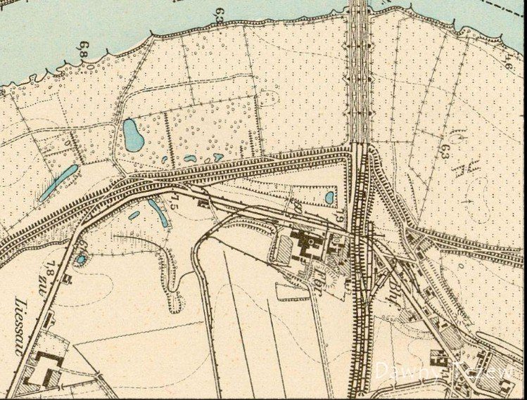 Teren cukrowni przed przesunięciem wałów.Linia kolejki miała inny przebieg.