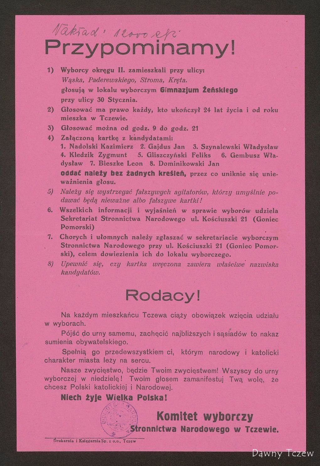 Wybory lata 30te, ulotki zachęcające do głosowania na Stronnictwo Narodowe (polona.pl)