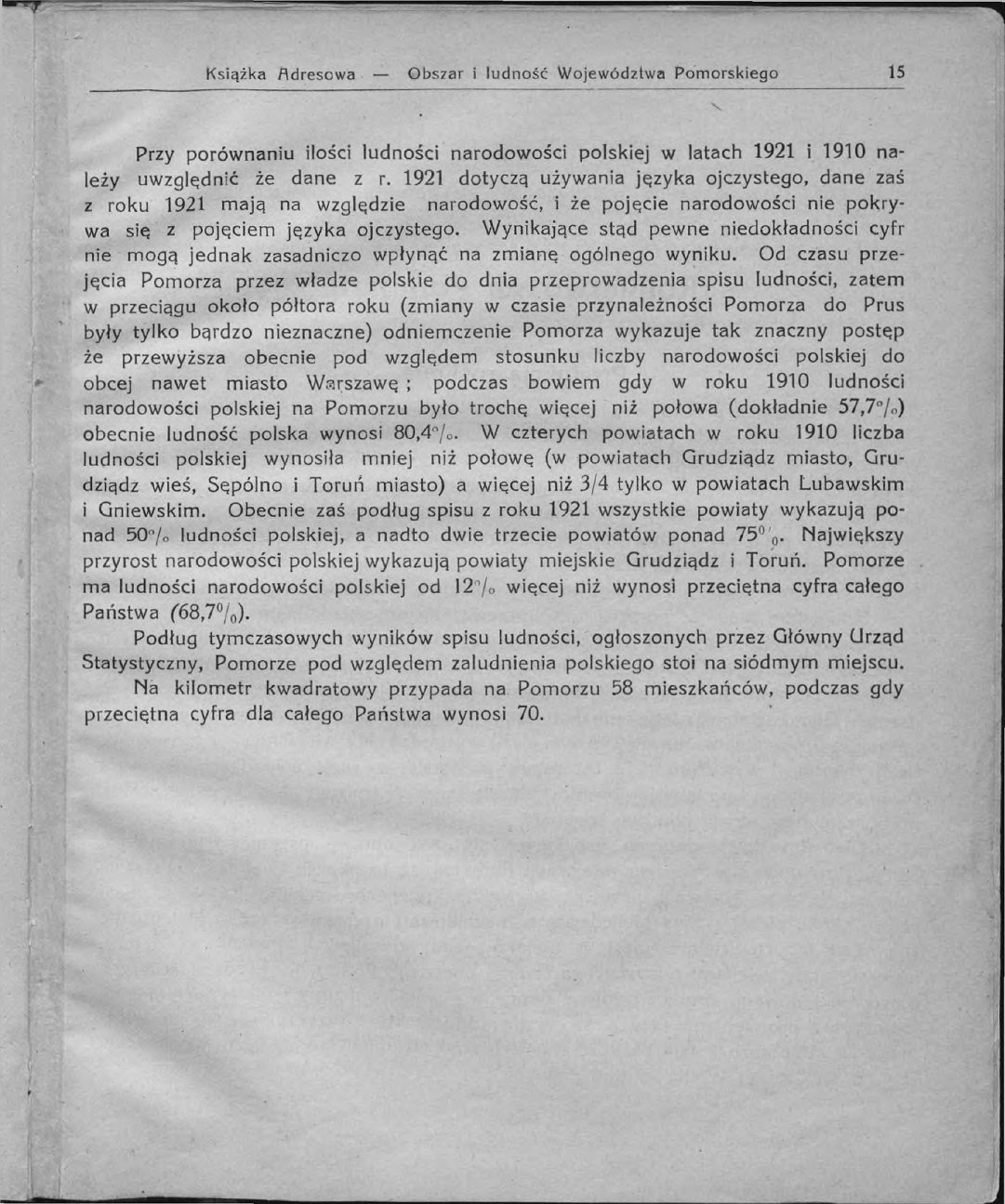 Pomorze wedle wyników spisu ludności bez wojska w koszarach.