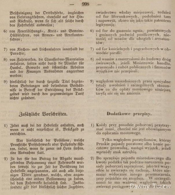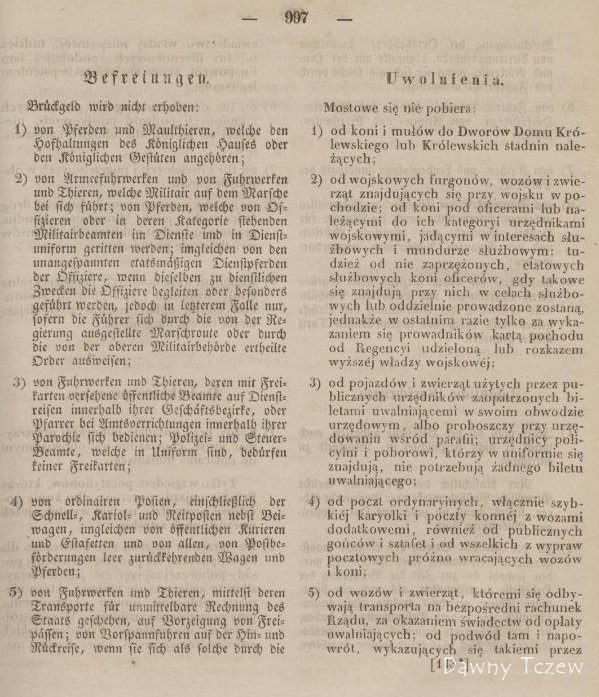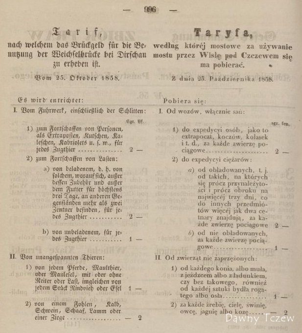"Gesetzsammlung für die Königlichen Preußischen Staaten", czyli "Zbiór Praw dla Państw Królestwa Pruskiego" (nr 56, 1858 r.) "pod Czczewem" i "mostu przez Nogę"