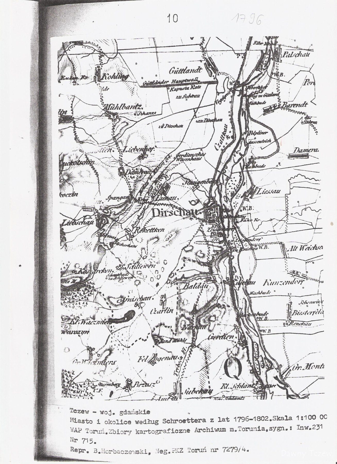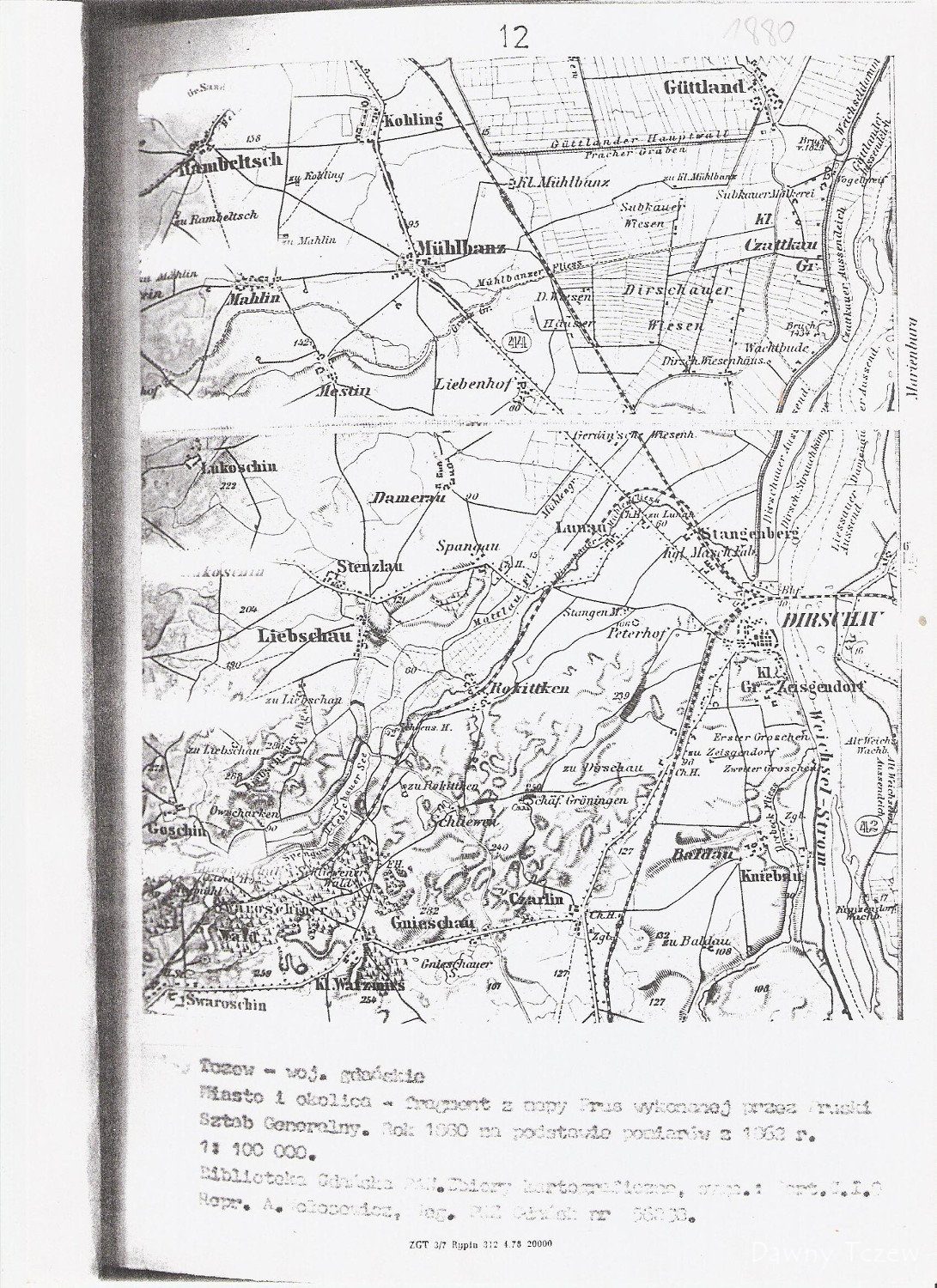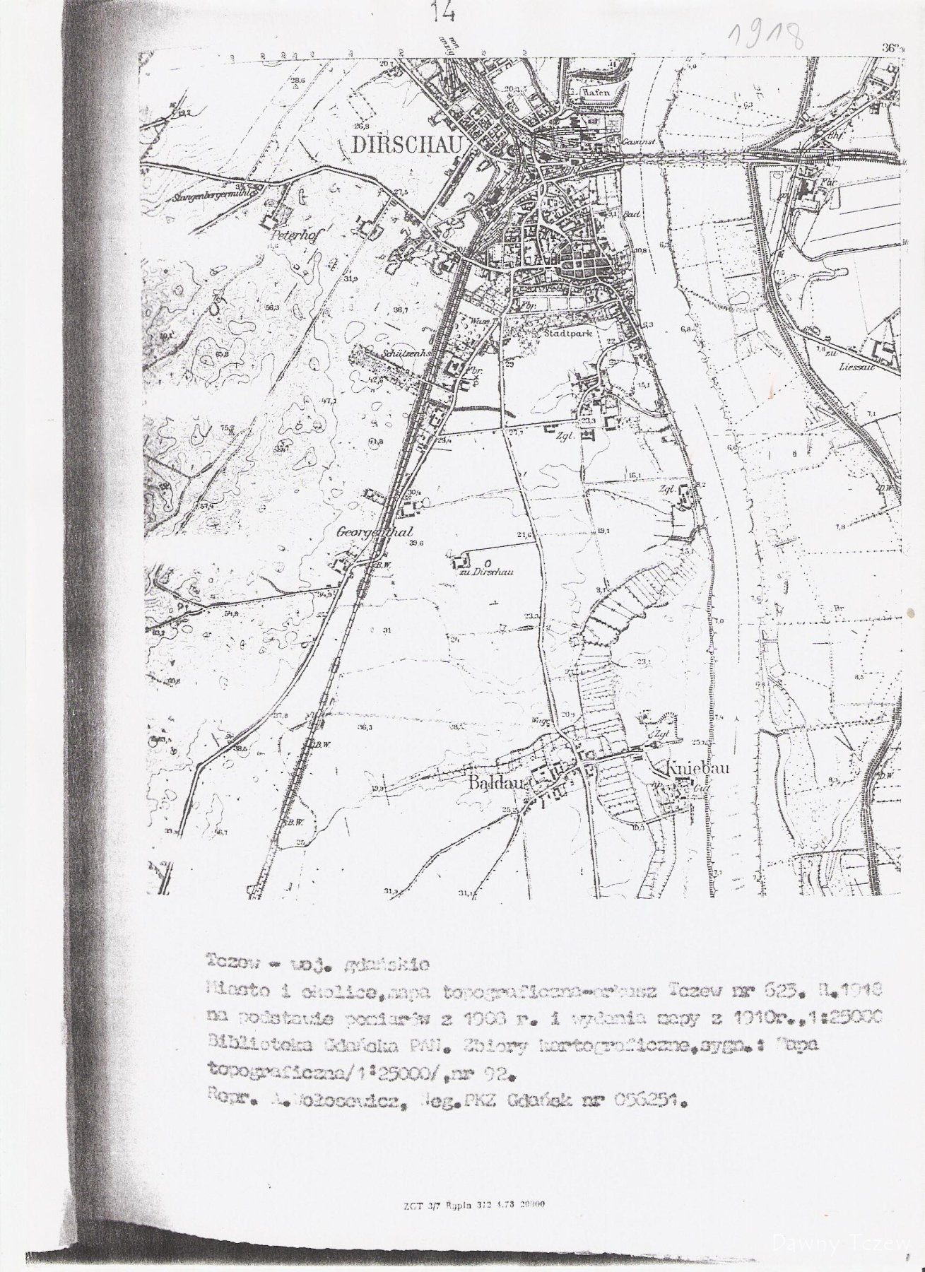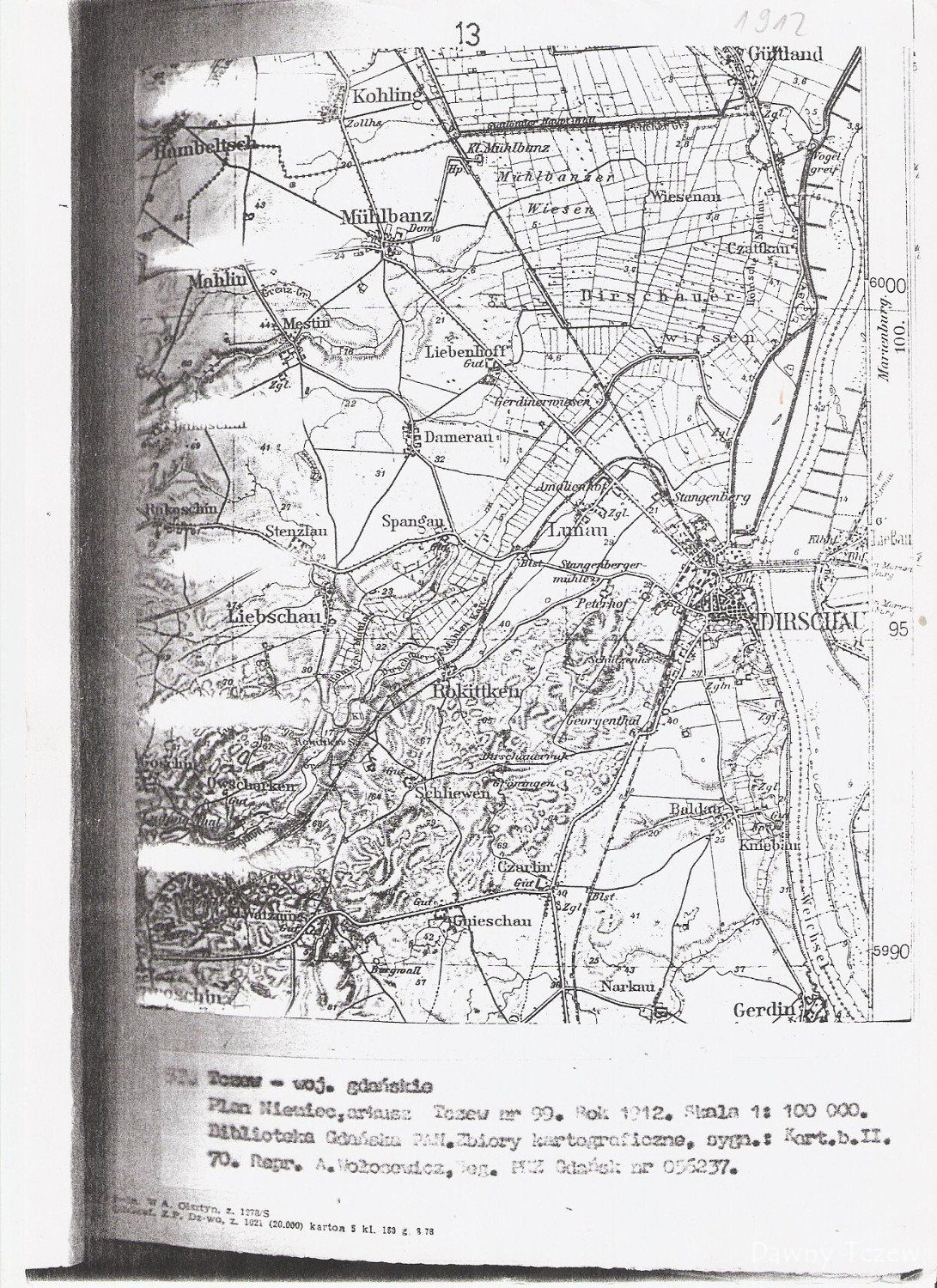 Druga część mapy ( 1898 rok)z książki Ryszarda Lidzbarskiego "W poszukiwaniu tczewskich wież ciśnień"
