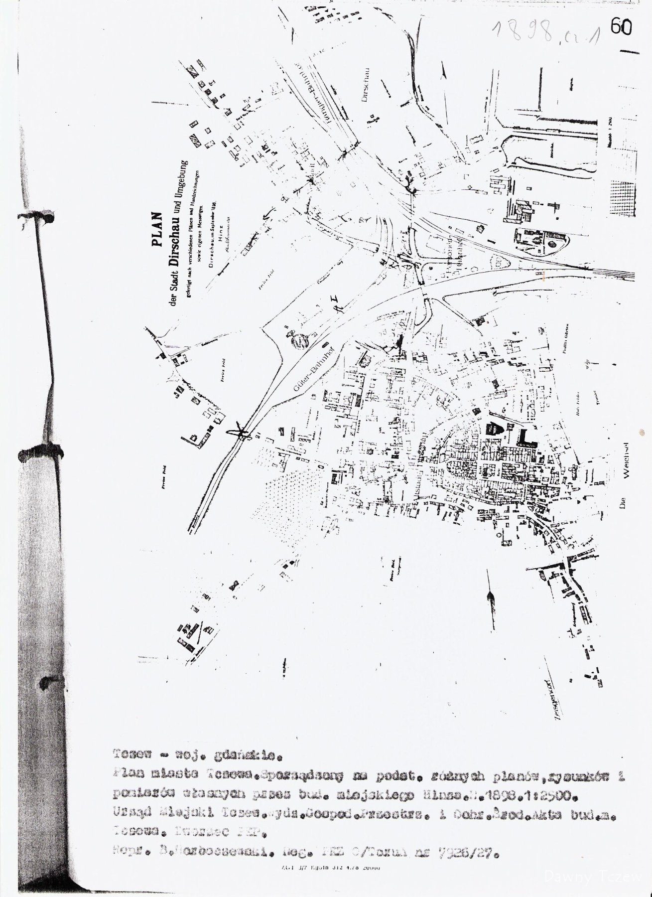 Mapa z 1898 roku, którą wykonał budowniczy Hinz o lepszej widoczności szczegółów, z książki Ryszarda Lidzbarskiego "W poszukiwaniu tczewskich wież ciśnień"