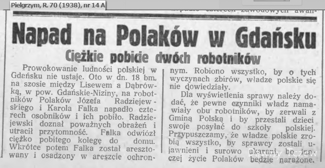Polski poseł do gdańskiego parlamentu, jeden z tak niewielu. Próbował walczyć z niemiecką nacjonalistyczną wścieklizną w Gdańsku - przeczytajmy, czy to tam Niemcy obili mu twarz :nea .