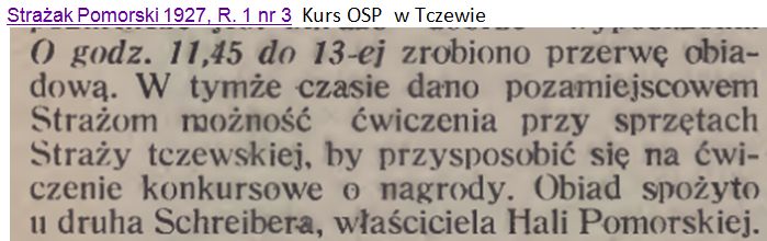 Kilka informacji prasowych: Obiad kursantów OSP (J. Schreiber był członkiem OSP, pisze o tym A. Murawski w "Rodzinnych tradycjach strażackich)