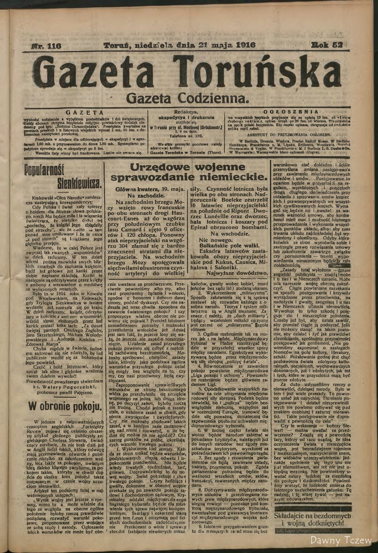 Gazeta Toruńska 1916, R. 52 nr 116, niedziela dnia 21 maja 1916