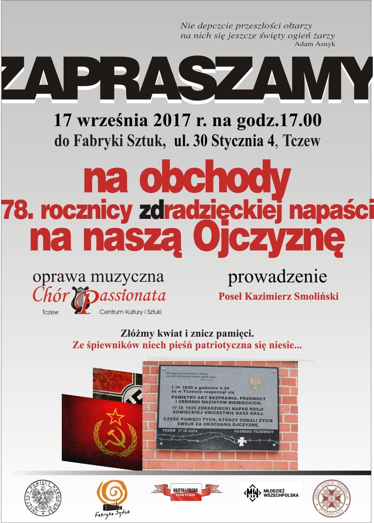 Uroczystości miejskie odbędą się w niedzielę 17 września o godz.12.00 przy Pomniku Ofiar Stalinizmu (Park przy Zespole Szkół Technicznych, ul. Sienkiewicza). PROGRAM UROCZYSTOŚCI: