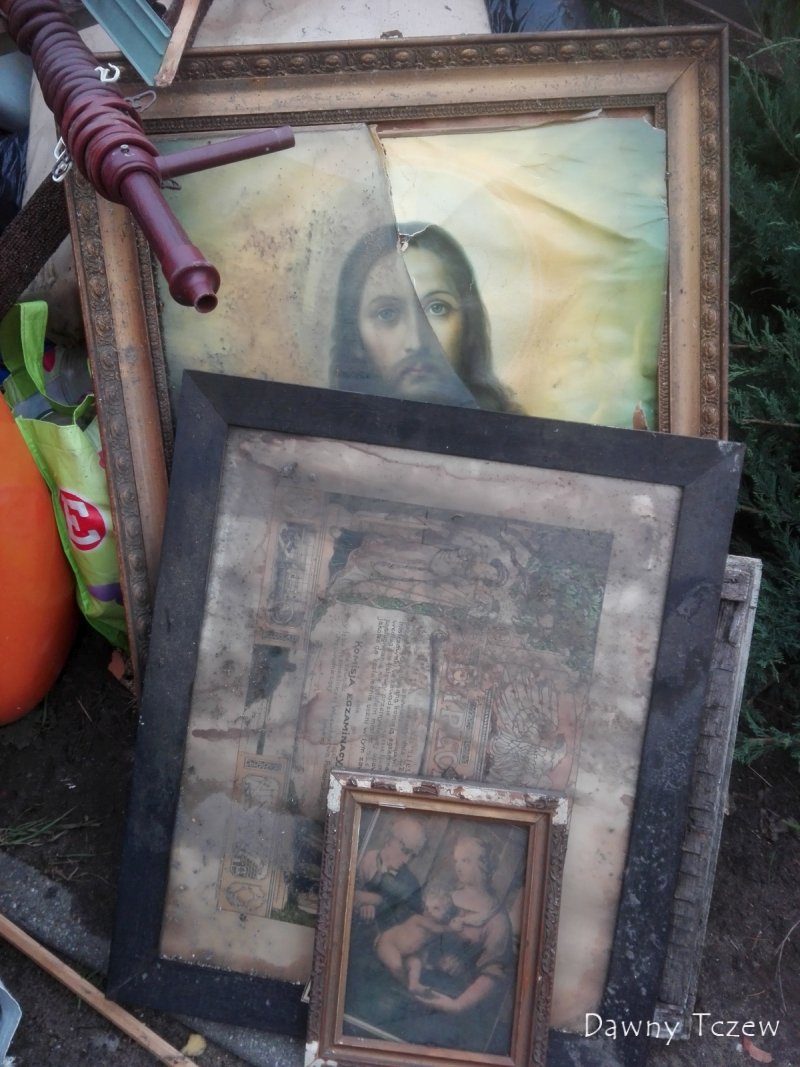 Kto ocali kilka tczewskich pamiątek? Zauważone przed momentem przy ul. Gdańskiej 54, niestety, nie mam możliwości ich przechowania - mocno już zniszczone obrazki dewocyjne i dyplom szkoły rzemieślniczej z roku 1929.