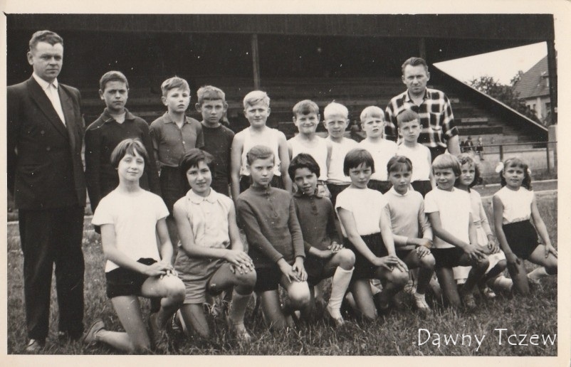 Mam to samo zdjęcie z opisem: Trzeci chłopak od lewej wygrał zawody spartakiady 62, których finał odbył się w Elblągu.