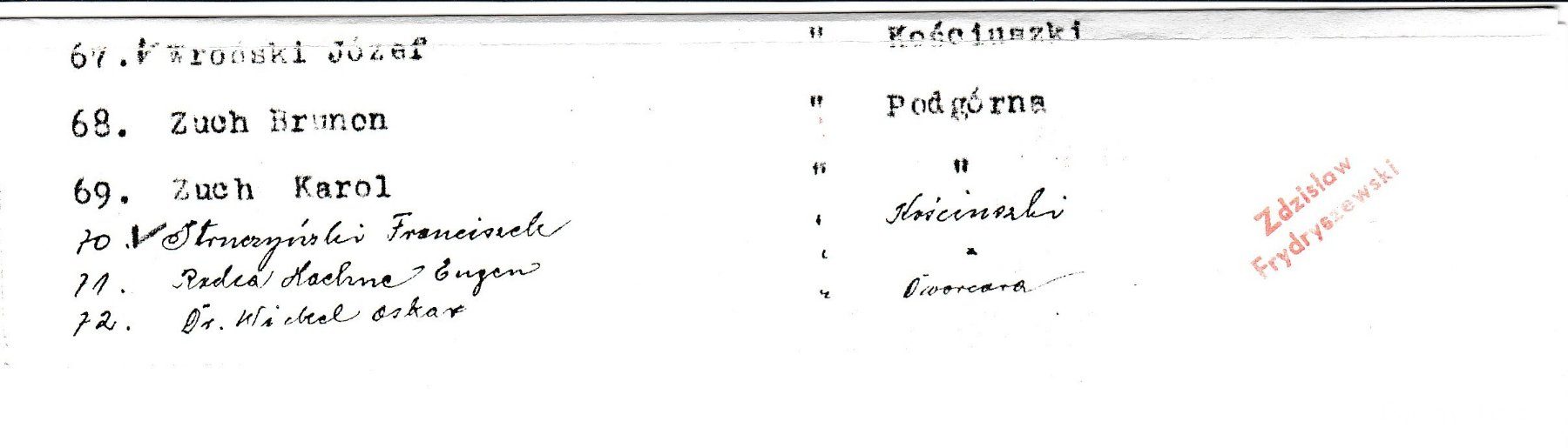Z materiałów archiwalnych, przechowanych przez ostatniego przedwojennego sekretarza Kurkowego Bractwa Strzeleckiego - Józefa Wrońskiego i przekazanych mnie poprzez ś.p. Zdzisława Frydryszewskiego zachował się spis członków z roku 1935, który niniejszym załączam.