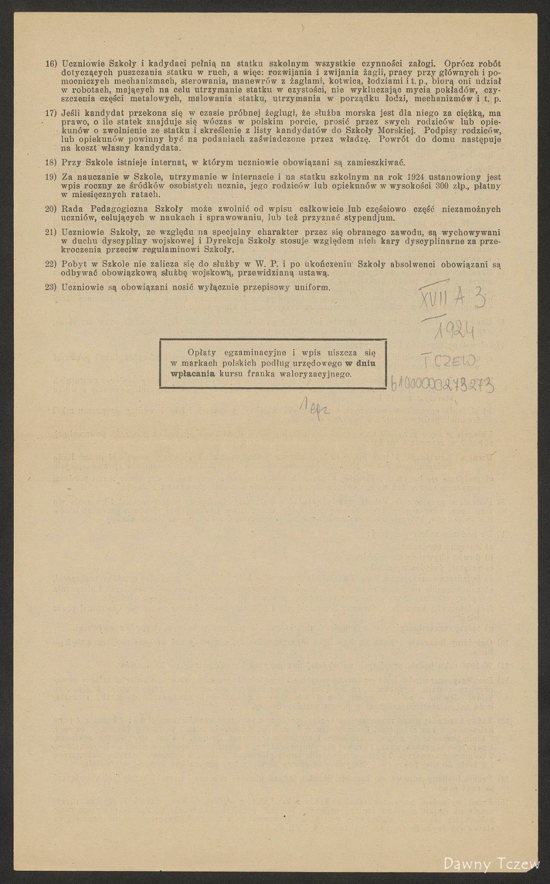 Informator o Szkole Morskiej z 1924 r. ze strony polona.pl