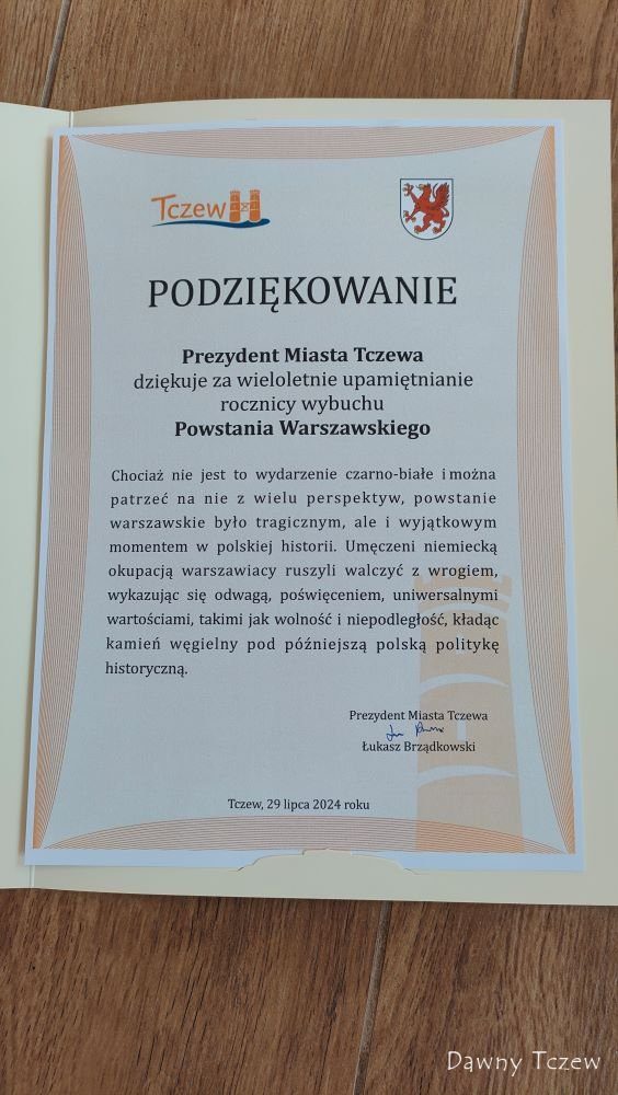 Otrzymaliśmy podziękowanie od prezydenta miasta za wieloletnie upamiętnianie rocznicy wybuchu Powstania Warszawskiego