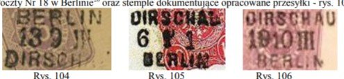 oraz stemple dokumentujące opracowane przesyłki - rys. 104 - 106.