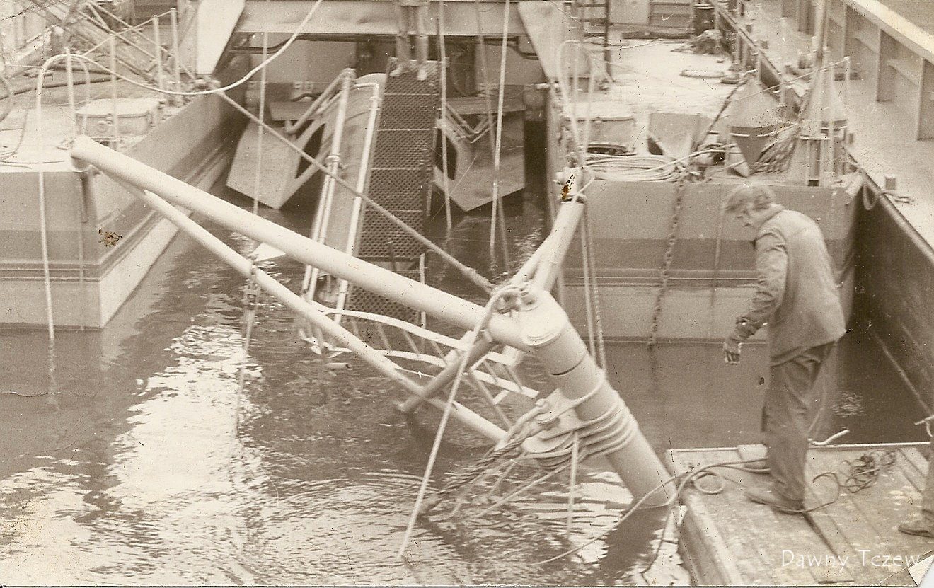 wieku. Zdjęcie przedstawia pogłębiarkę ( chyba tzw. 450-tkę). Została zwodowana pod koniec dnia a na drugi dzień