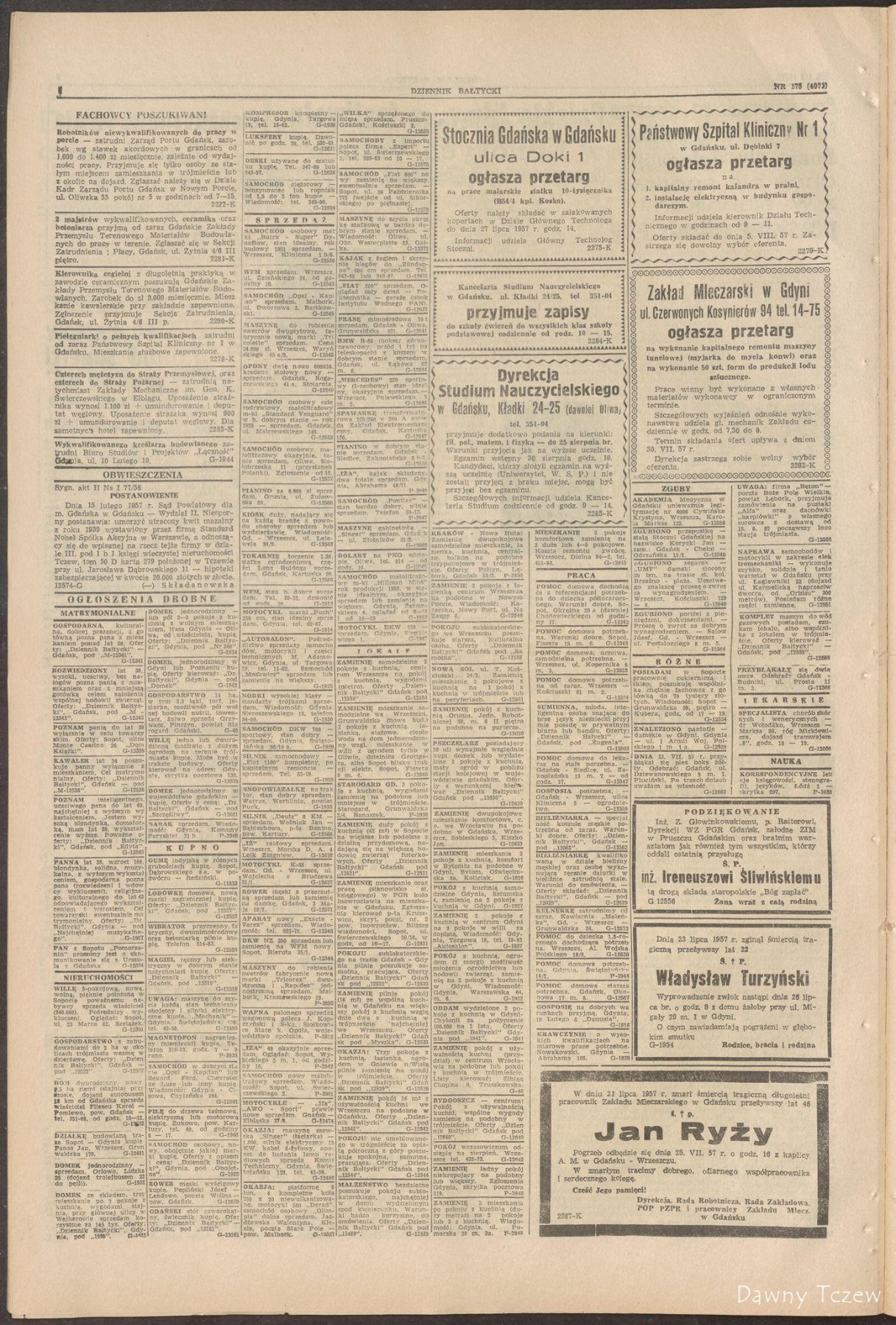 Dnia 15 lutego 1957 r. Sąd Powiatowy dla m. Gdańska w Gdańsku — Wydział II. Niesporny postanawia: umorzyć utracony kwit mazalny z roku 1939 wystawiony przez firmę Standard Nobel Spółka Akcyjna w Warszawie, a odnoszący się do wpisanej na rzecz tejże firmy w dziale III. pod 1 b 1 księgi wieczystej nieruchomości Tczew, tom 50 D karta 279 położonej w Tczewie przy ul. Jarosława Dąbrowskiego 11 — hipoteki zabezpieczającej w kwocie 20.000 złotych w złocie. 12574-G (—) Składanowska