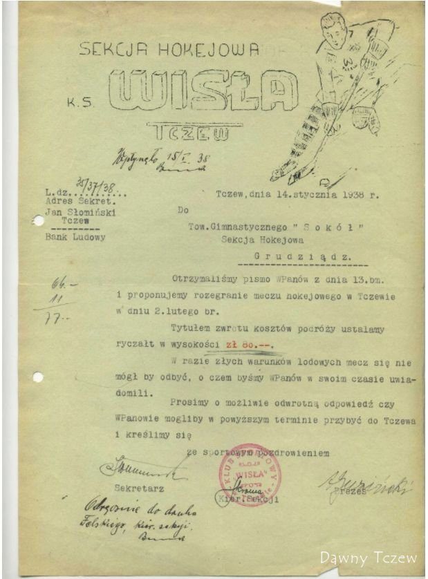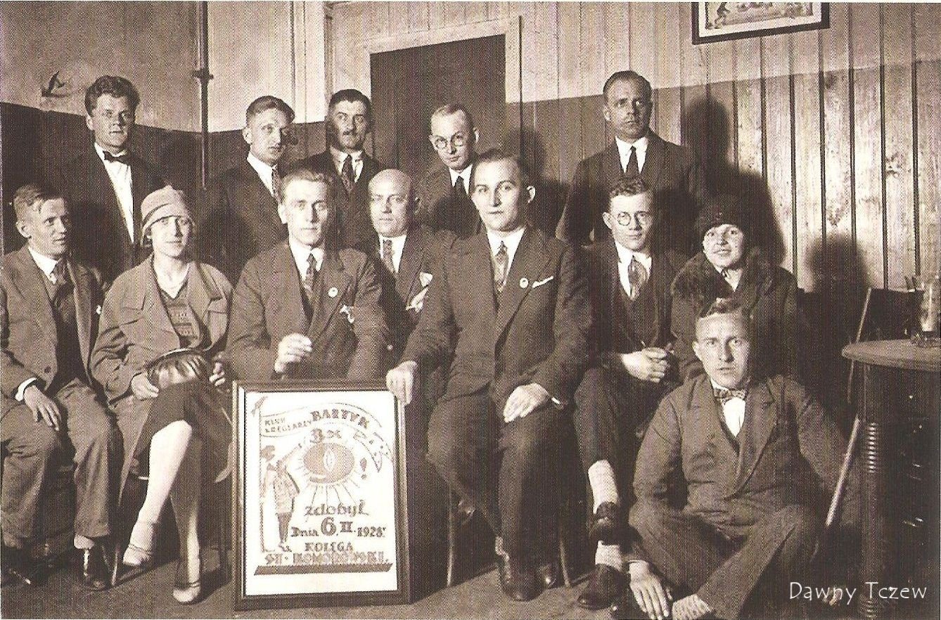 Sport kręglarski cieszył się w Tczewie sporą popularnością. W latach dwudziestych XX wieku istniały trzy kluby, sekcje kręglarskie. Jedyna kręgielnia mieściła się w podziemiach Hali Miejskiej. Wchodziło się tam od strony ogrodu. Sekcja kręglarska klubu sportowego "Wisła" organizowała turniej dwa razy do roku. Zwycięscy zdobywali tytuł króla i wice króli. Na fotografiach uczestnicy rozgrywek klubu kręglarzy "Bałtyk" w lutym 1928 roku i prawdopodobnie zawodów klubu "Merkur", założonego przez Alojzego Synaka. Wśród zgromadzonych są, między innymi: Bartkiewicz, Łoński, Śledź, Ciszewski