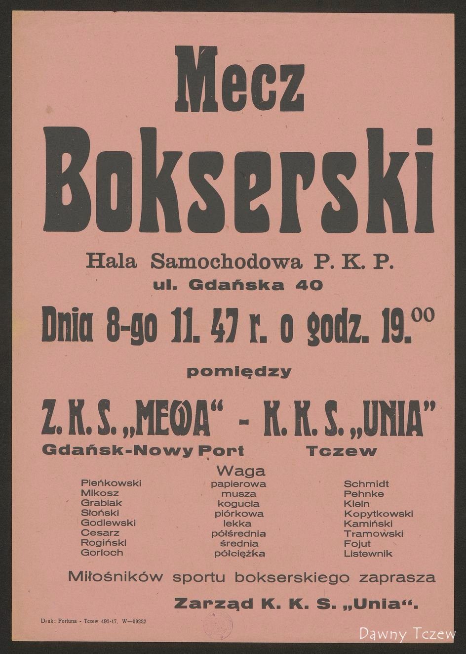 Afisz nieznanej mi drużyny pięściarskiej Tur, która była Mistrzem Wybrzeża. Co ciekawe siedziba klubu mieściła się przy Wybickiego 38-40