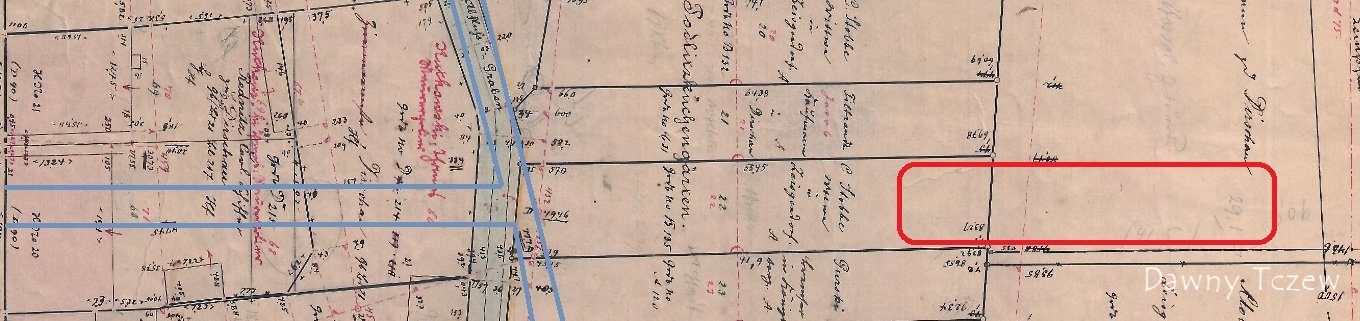 Na bazie dokumentów, którymi mam teraz pod ręką, nie mogę ustalić, czyją własnością były przed 1945 r. parcele Stobbe i Loebensteina. Wydaje się jednak, sądząc po bliskości placu, że - przynajmniej na pocz. XX w. - należały one do tartaku Lippfelda (później Nosowicza), a nie Brandta czy braci Wilke.