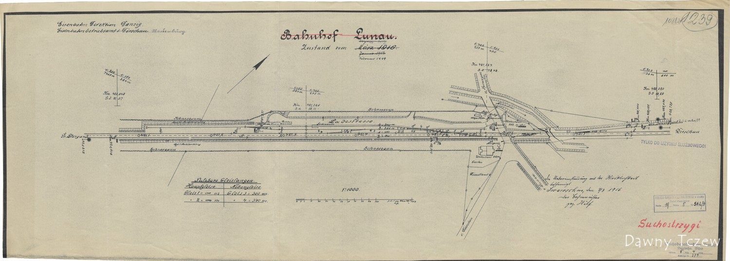 Eisenbahn Direktion Danzig. Eisenbahnbetriebsamt Marienburg. Bahnhof Lunau. Zustand vom Februar 1919