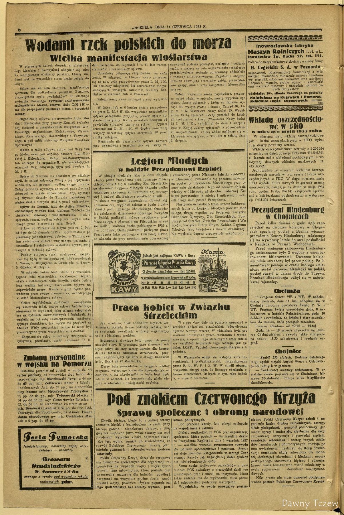 P. Prezydent Rzeczypospolitej w Tczewie. P. Prezydent Mościcki w przejeździe do Gdyni zatrzyma się dnia 3 sierpnia w Tczewie. Około godziny 11 przed południem w sali starostwa nastąpi powitanie wysokiego gościa, a następnie zwiedzanie portu tczewskiego.