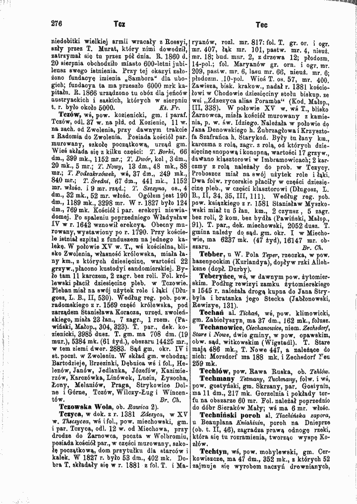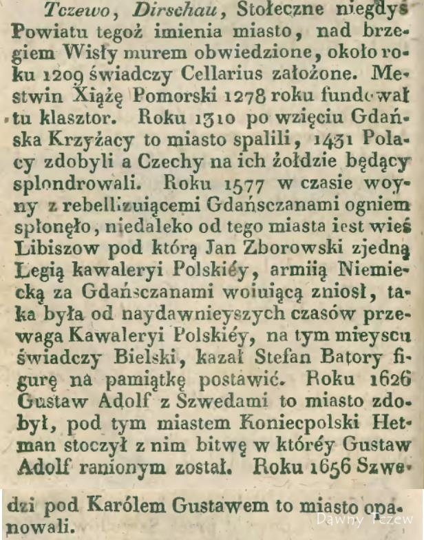 Fragment dotyczący Tczewa z książki "Opis starożytnéy Polski" z 1816 roku