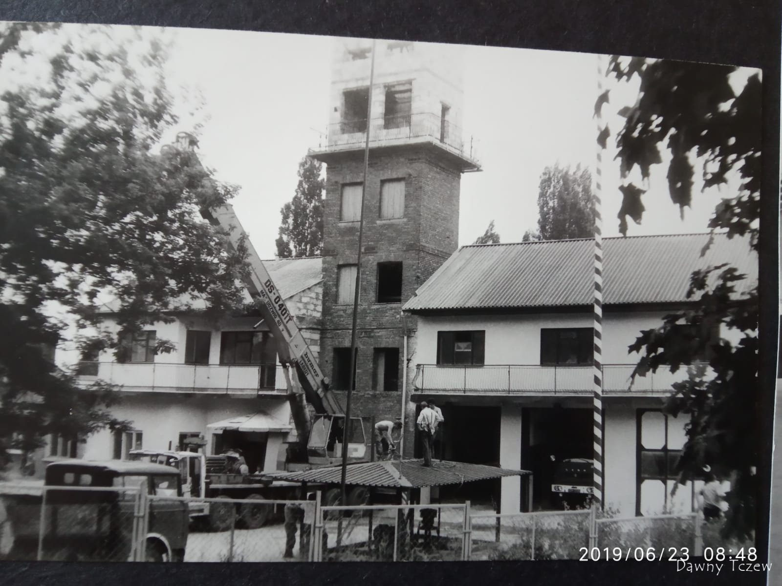 Tczew. Ulica Gdańska. Zakładowa Zawodowa Straż Pożarna PKP w Tczewie. Pierwszy etap budowy remizy ZZSP PKP Tczew. Lata 80. XX wieku