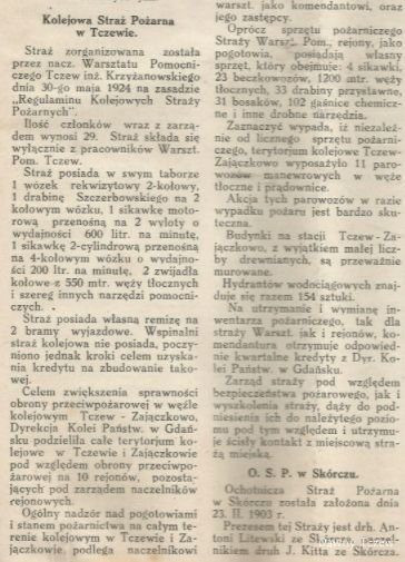 Kolejowa Straż Pożarna była specjalistyczną jednostką ratowniczą powstałą jako Ochotnicza Straż w 1921 roku. Jej dzieje do roku 80 zostały przedstawione w kronice dostępnej na stronie MBP https://mbp.tczew.pl/digitalizacja/kron ... index.html