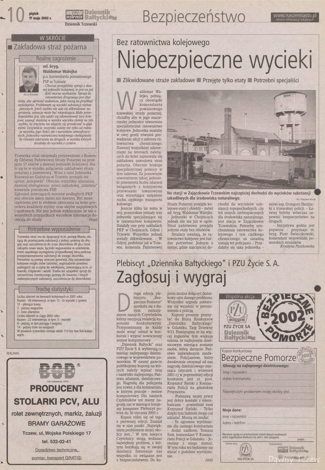 Krystyna Paszkowska w Dzienniku Tczewskim 2002 nr 20 z dnia 17 maja 2002 roku pisze:Bez ratownictwa kolejowego