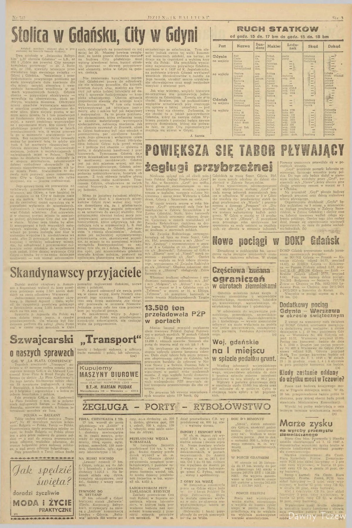 Dzień 23 grudnia 1947 posiadać będzie zarówno dla Wybrzeża, jak i dla terenów prawobrzeżnych dolnej Wisły, ogromne znaczenie. Poprzez most tczewski popłynie znów strumień życia, tak gwałtownie przerwany kataklizmami tegorocznej wiosny, (js)
