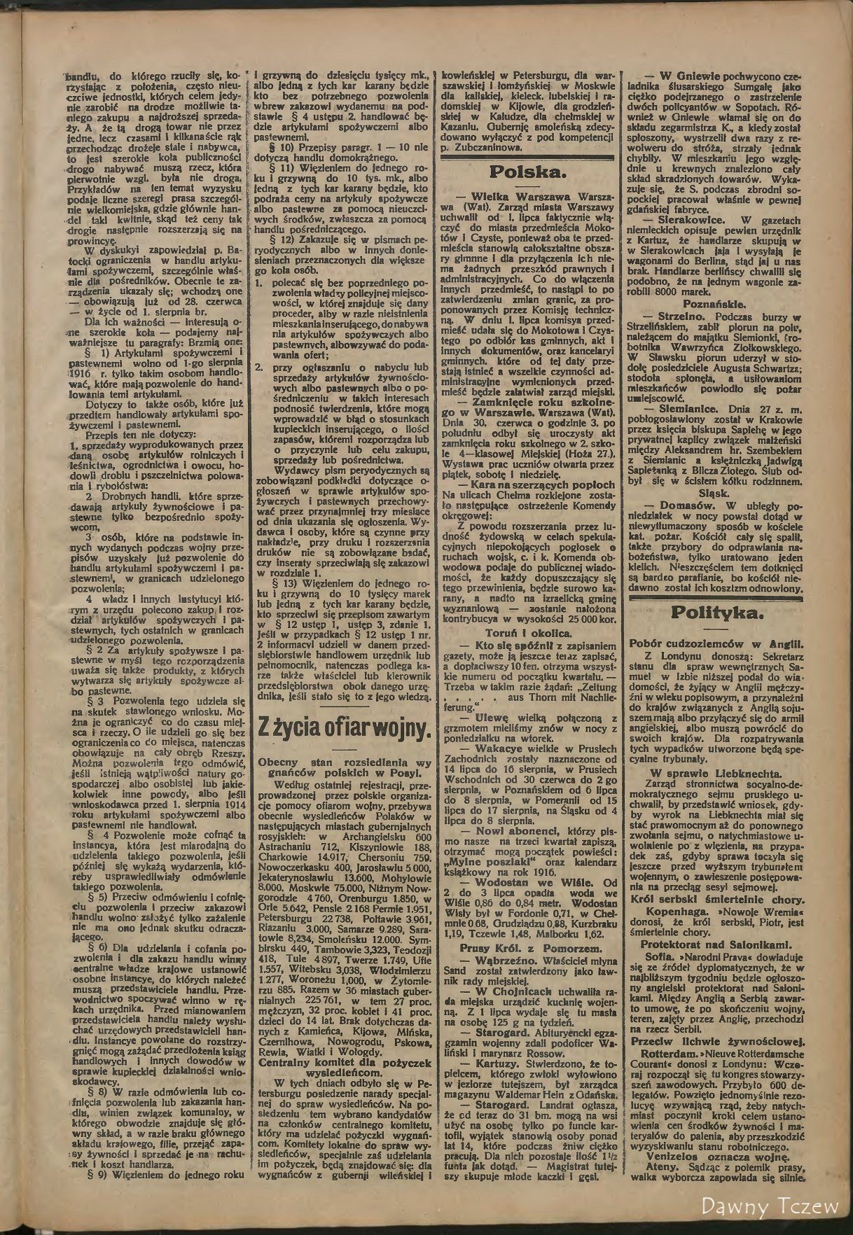 — Gniew. Wydział powiatu kwidzyńskiego postanowił zapasy zboża i mąki powiatu wziąć w administracyę własną i wyznaczyć ceny najwyższe
