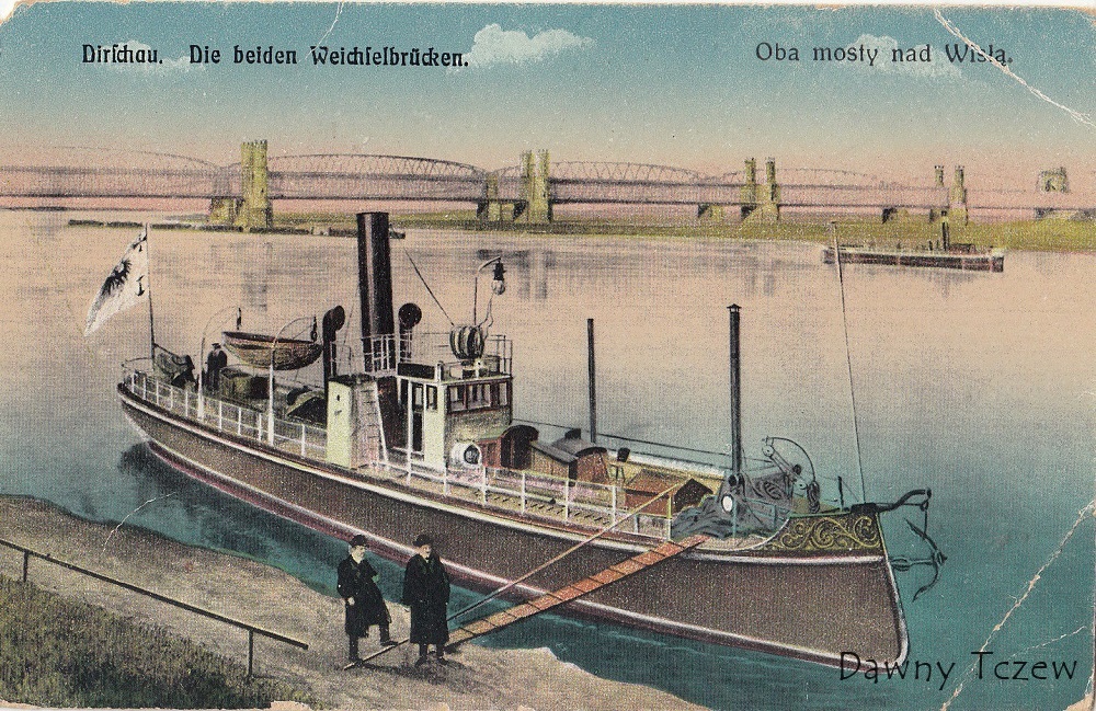 Sam Tczew, od strony rzeki przynajmniej, wygląda zdecydowanie obskurnie. Ciekawy jedynie jest bardzo długi most, który odznacza się tym, że z jego kilkunastu przęseł, prawie każde jest innej konstrukcji. Zaraz za Tczewem kończy się wygodna jazda środeczkiem rzeki. Od tego miejsca Wisła usiana jest niezliczonymi piaszczystymi łachami, ledwo widocznymi ponad powierzchowną wody, lub ukrytymi tuż pod nią. Statek musi lawirować, posuwając się zygzakiem od brzegu do brzegu.