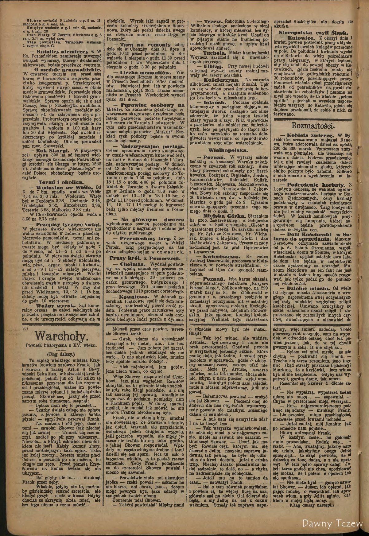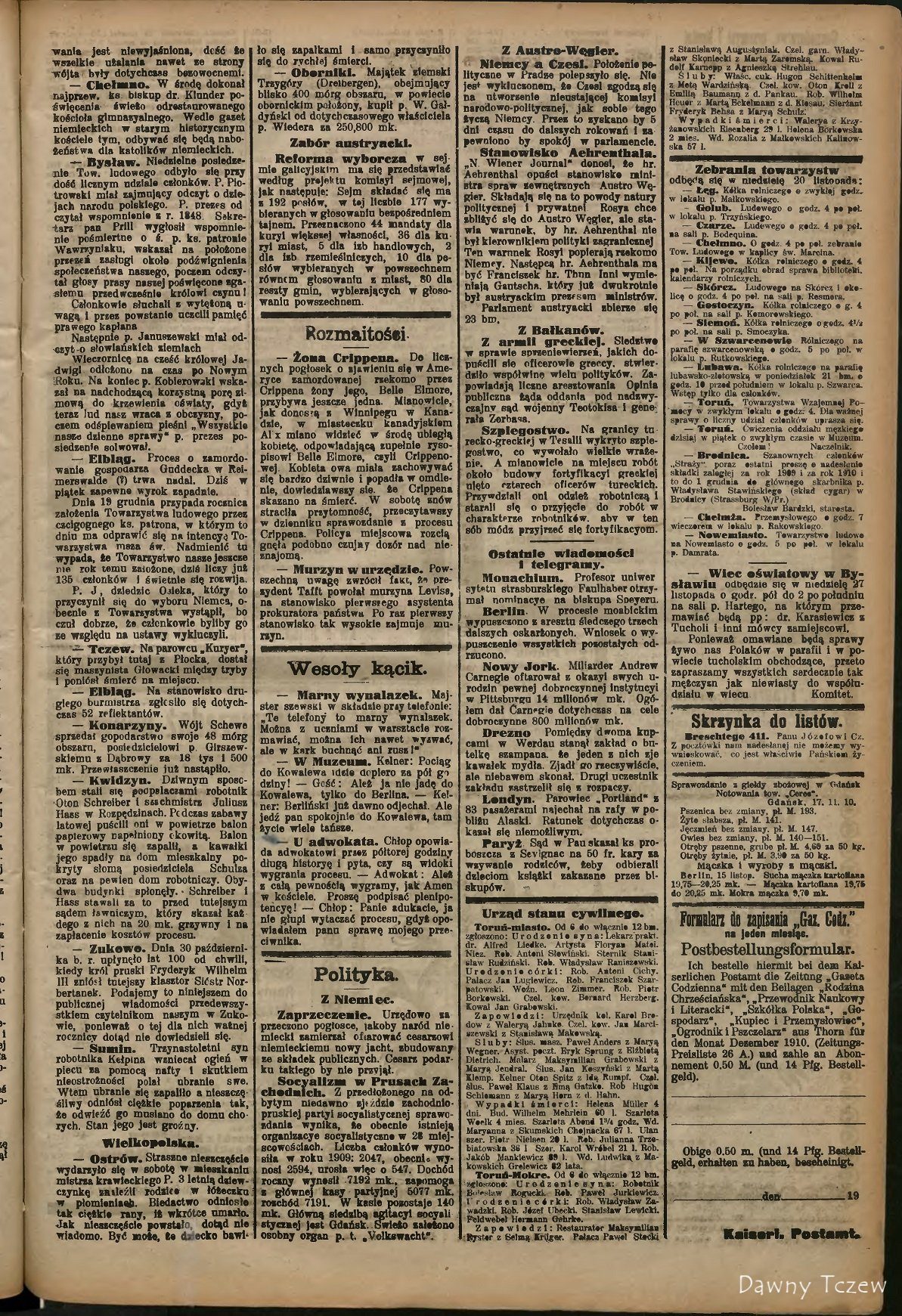 - Tczew. Na parowcu "Kuryer", który przybył tutaj z Płocka, dostał się maszynista Głowacki między tryby i poniósł śmierć na miejscu.