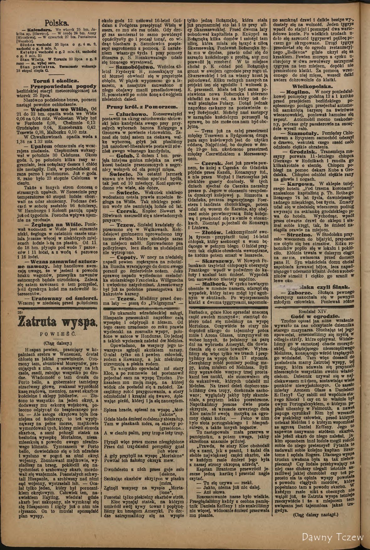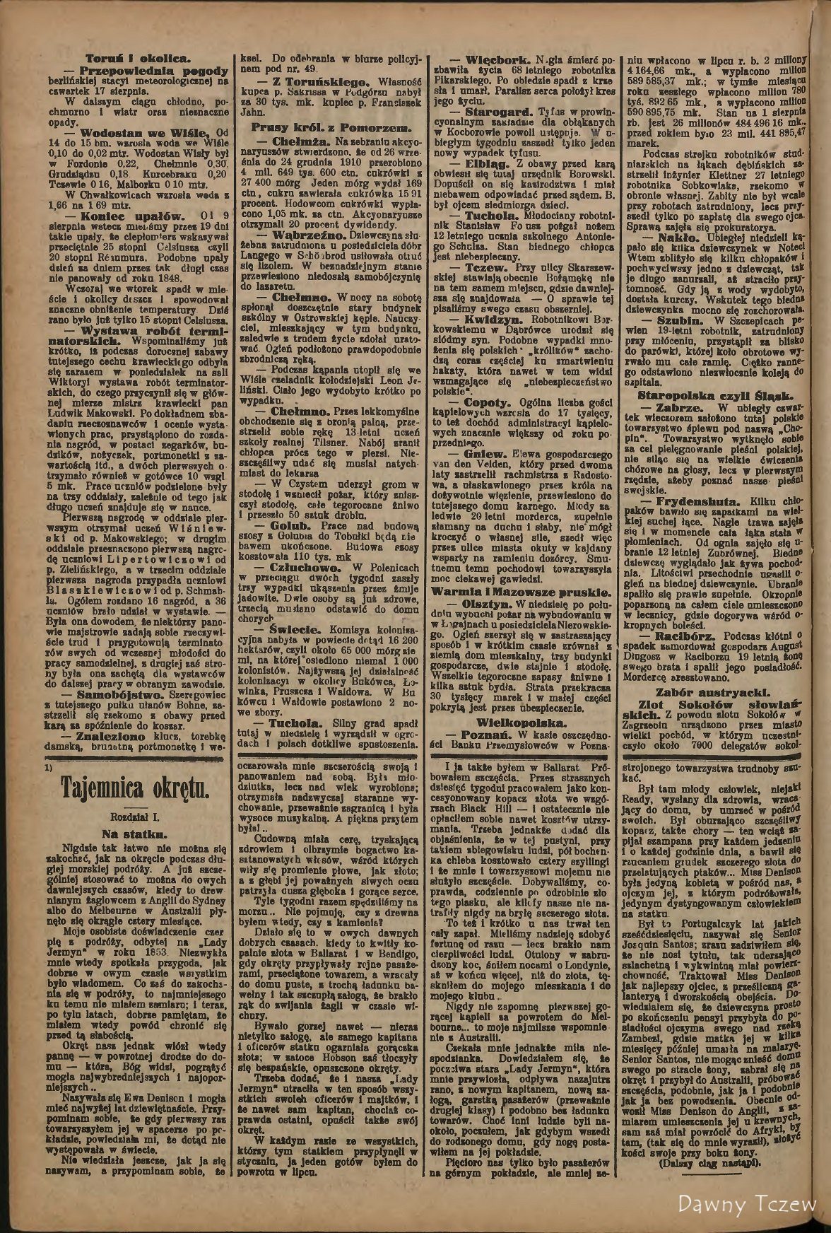 — Tczew. Mieliśmy przed dwoma laty — piszą da "Pielgrzyma" — tylko jedną Bożąmękę, która stała już przynamniej sto lat i to przy ulicy Skarszewskiej. Przed dwoma laty pobudował kapitalista p. Knuppel za Bożąmęką kilka domów i założył tam ulicę, która miała się łączyć z ulicą