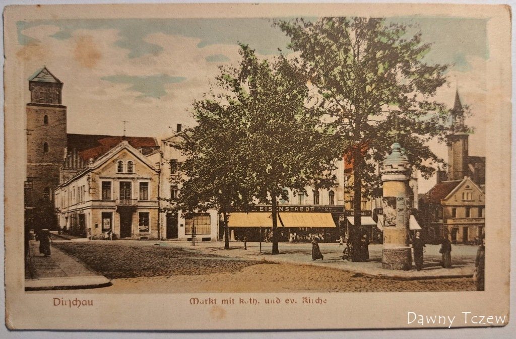 - Pocztówka Tczew. Dirschau. Rynek Kościół Plac Generała Józefa Hallera (daw. Plac Wolności) ca. 1918