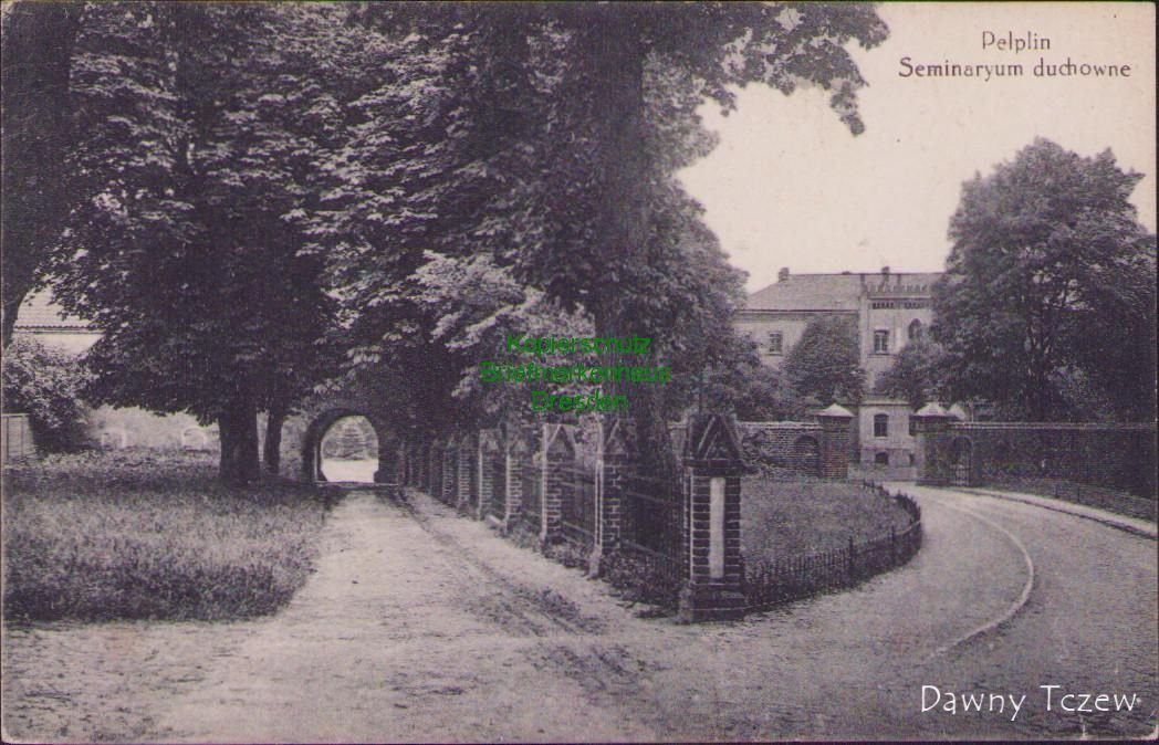 Poza konkursem pocztówka ze zdjęciem seminarium duchownego z 1918 roku: