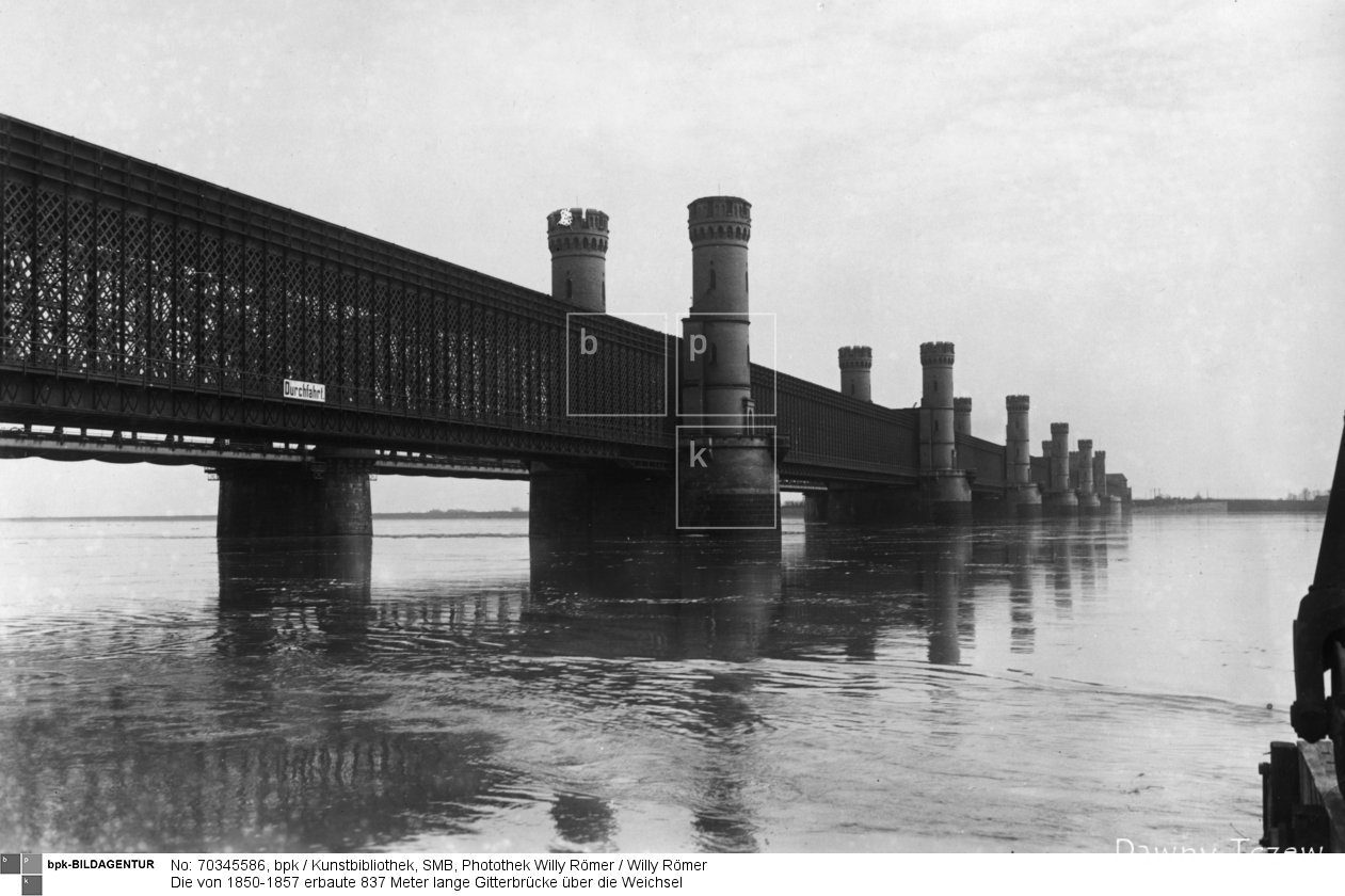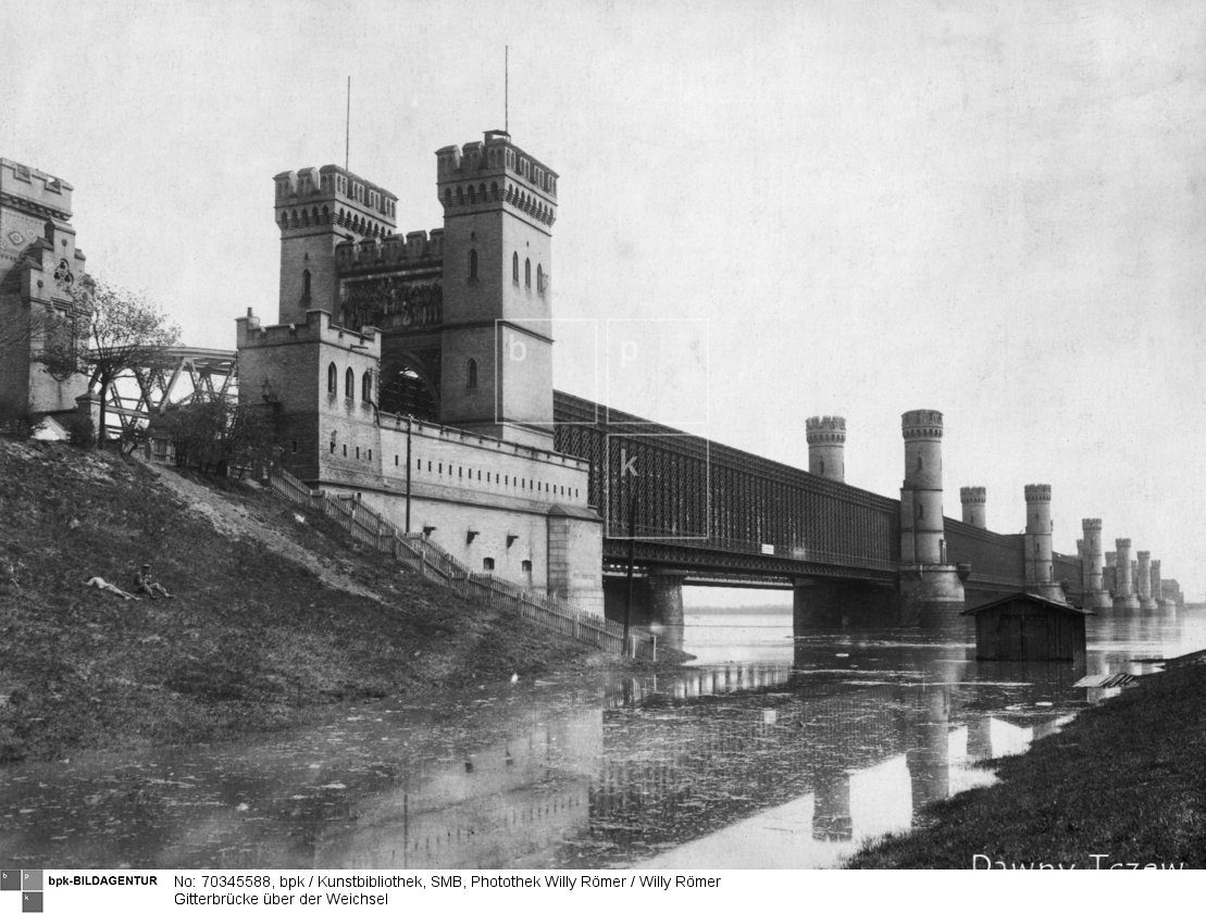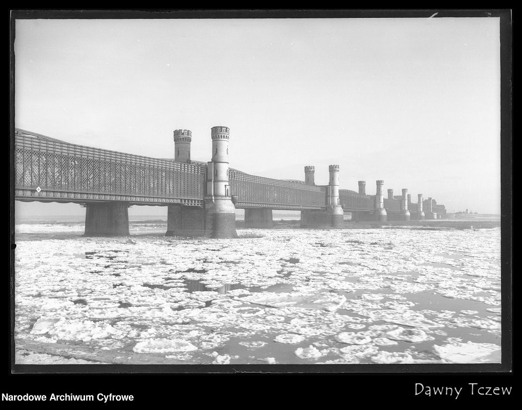 Zimowy most tczewski z portalem w Lisewie widocznym w oddali...