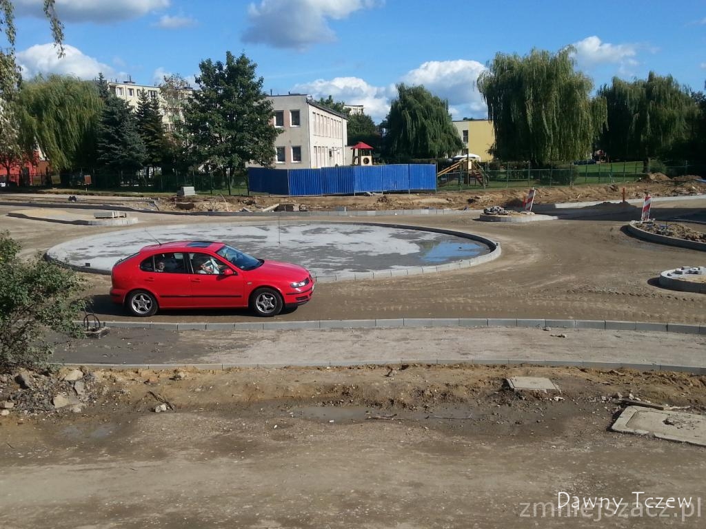 Praca na rondzie i jego otoczeniu zmierza do finału. Tak wygląda jego stan na dzień 24.09 , godz. 13.35. Są już pierwsi kierowcy testujący podkład pod asfalt.