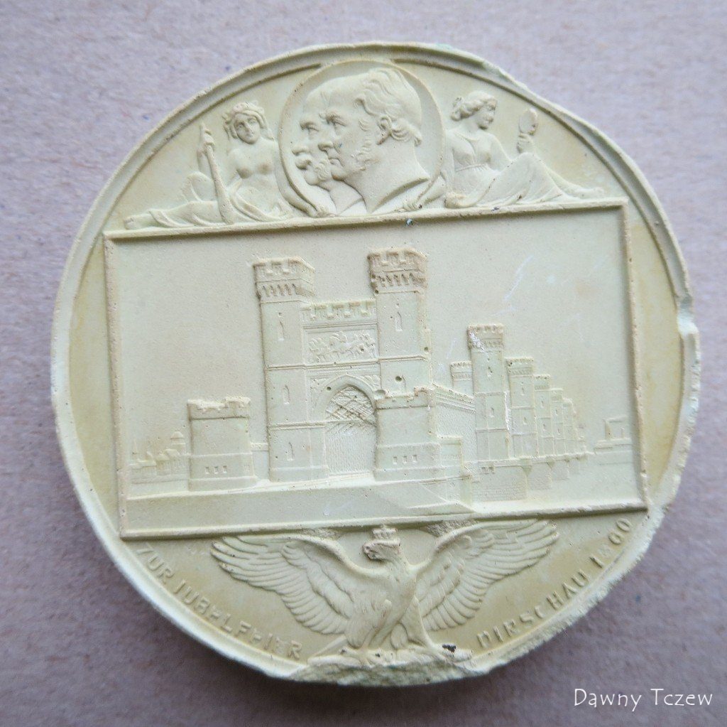 Źródło: https://www.ebay.pl/itm/236759701522?_s ... R6iTruW2ZwAutor aukcji pisze:Bronzemedaille 1860 Auf die Einweihung der Eisenbahnbrücke in Dirschau Preussen - Sambor Herzog von Pommern 1260