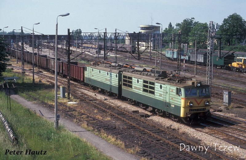 Fotka oraz wpis pochodzą oczywiście z:Niewykluczone, że niektórzy z Was mogą narzekać na częstsze ostatnio obrazy z okolic Tczewa. Obiecuję, że niebawem wyruszymy w inne regiony kraju. Zanim to nastąpi, chciałbym podzielić się zdjęciem ważnego dla mnie miejsca. Był to najlepszy punkt do obserwowania życia tczewskiej stacji kolejowej. Do dzisiaj można tu spotkać ojców i dziadków, oglądających z synami i wnukami przejeżdżające pociągi. Tak było również w moim przypadku - być może nawet 2 czerwca 1990 roku. Wówczas Pan Peter Hautz sfotografował karsznicką ET42-006 kierującą się na południe ze składem próżnych węglarek.