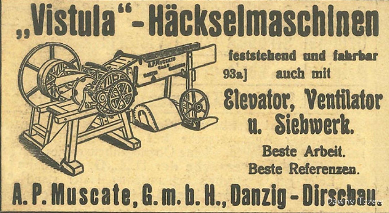 Banalna zdawałoby się reklama, jaką odnaleźć można w Książce Adresowej Rzeszy Niemieckiej z 1906 r. rzuca ciekawe światło na biznesową strategię przedsiębiorstwa braci Muscate oraz jego tczewskiej filii w szczytowym okresie rozwoju.