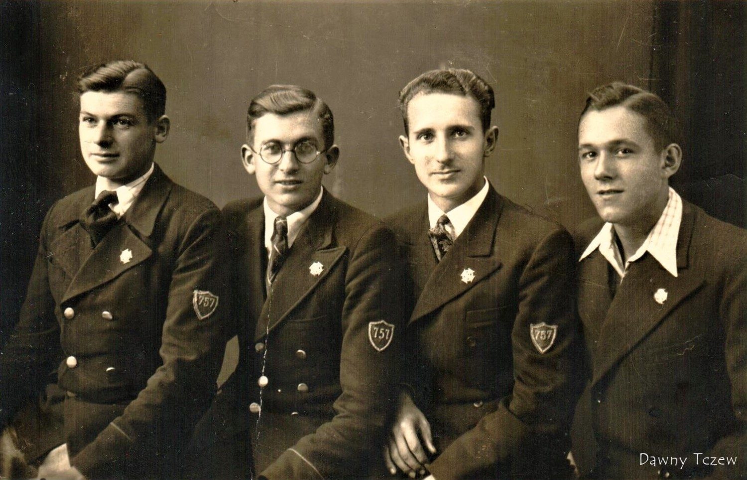 Album, o którym wspomnieliśmy, to:" "ALBUM TCZEWSKI, lata 1900 - 1945. Szkolnictwo i gospodarka Tczewa".Zdjęcie pojawiło się w jednym z albumów opracowanych przez pana J. Golickiego. Podpis brzmi: "Sławomir Jurgo, Alfred Cząstka, Jan Elszkowski i Józef Fiedler przed maturą w 1939 roku".