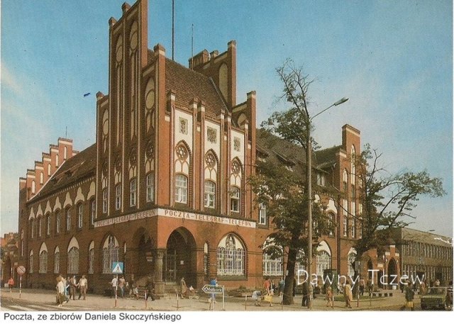 Pierwszy urząd pocztowy otwarto w 1765 r. w kamienicach przy ul. Krótkiej 19 i 20. Po 1771 r. została przeniesiona do budynku na rynku, a około 1800 r. trafiła w pobliże Bramy Wysokiej przy ul. Pocztowej (obecnie J. Dąbrowskiego). Ostatecznie urząd przeniósł się w dzisiejsze miejsce w 1850 r., a w 1905 r. zbudowano według projektu architekta Karola Hempla obecny, neogotycki gmach poczty głównej. Sfinansowany z kontrybucji nałożonej na Francję przez Prusy po wojnie z 1871 roku.